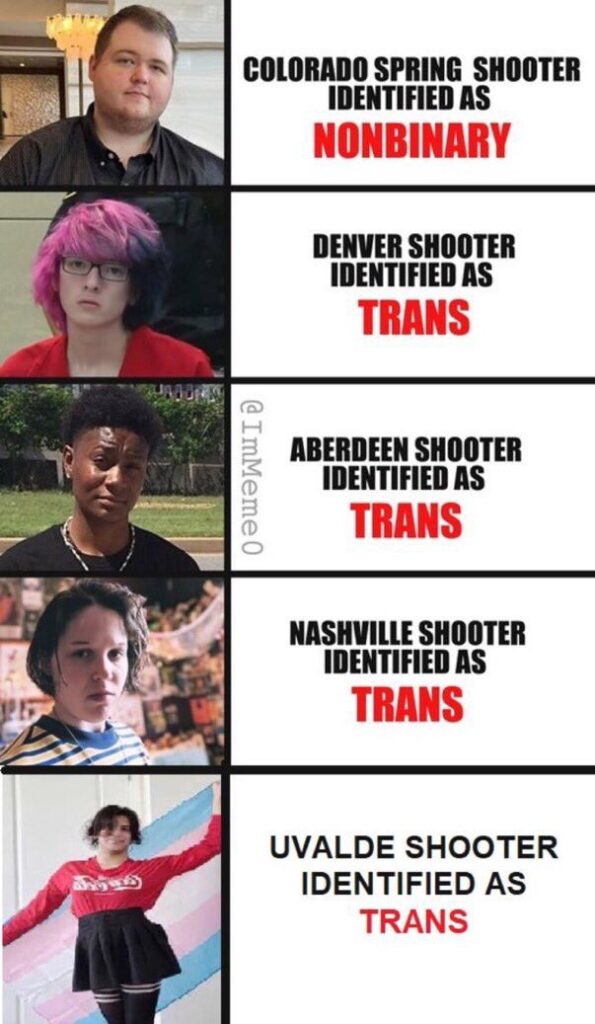 Like several recent mass shootings, the killer was involved in the trans movement.