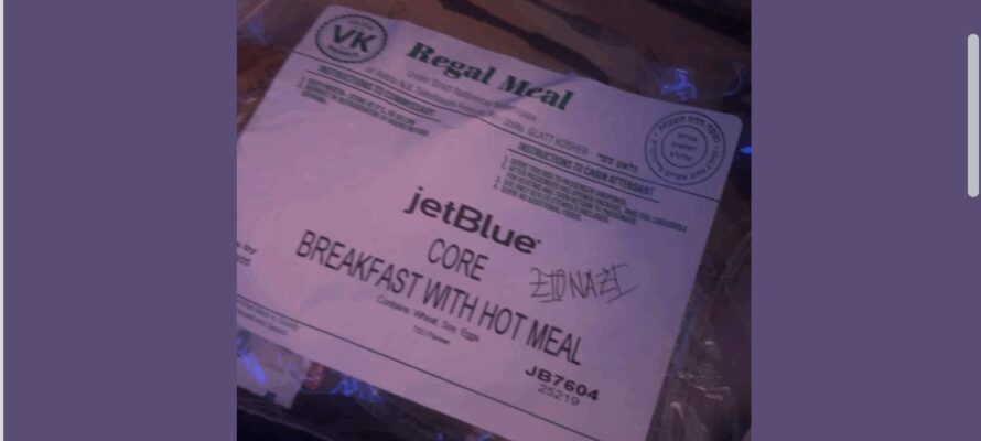A passenger on a JetBlue flight discovered the slur “Zionazi” scrawled across his kosher meal packaging, marking the latest in a series of antisemitic incidents plaguing the airline industry.