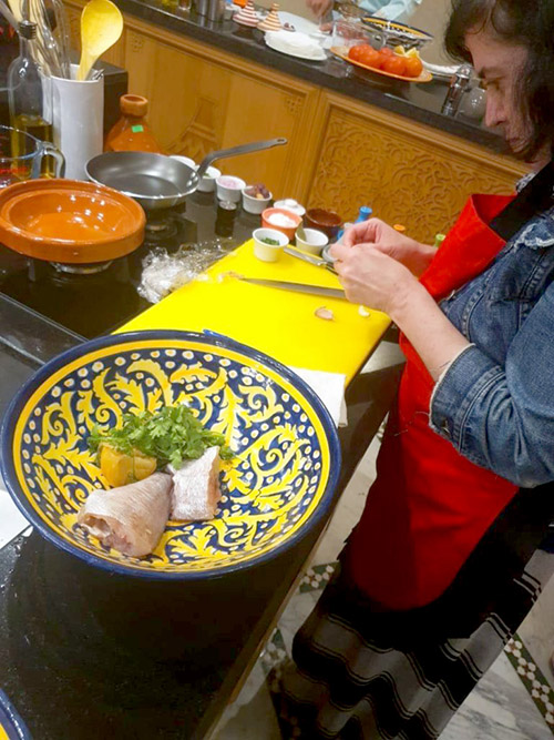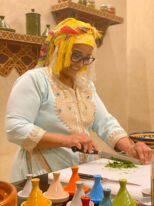 -Work at your own workstation alongside the Dada* to prepare a delicious Moroccan meal, including two salads, main dish, and Moroccan dessert