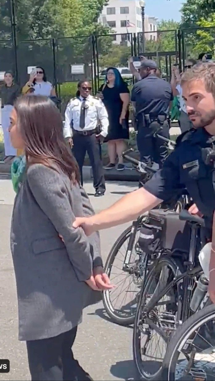 A viral video shows an officer escorting the New York lawmaker away from the Supreme Court as a nearby woman shouted, “Abortion rights are under attack!” Ocasio-Cortez can be seen walking with her hands behind her back, creating the illusion of being handcuffed. She then raises a fist in the air, confirming the absence of handcuffs.
