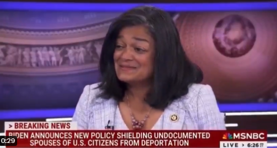 During her appearance on “The Reidout” with host Joy Reid, Jayapal appeared to laugh when discussing news outlets’ reporting on President Joe Biden’s June 18, 2024 executive action, according to the outlet. Jayapal’s reaction, specifically in response to the Fox News banner reading, “Migrant arrested for raping 13-year-old New York City girl,” drew criticism.