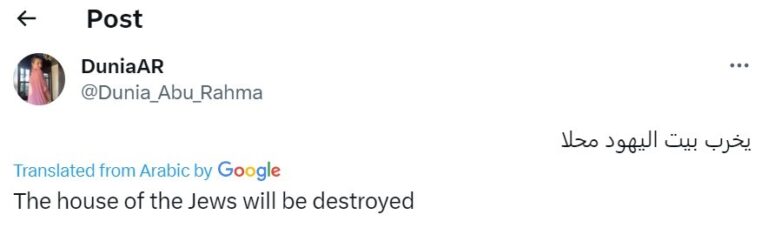 Along with her antisemitic posts, Dunia Abu Rahma has also called for the destruction of Israel.