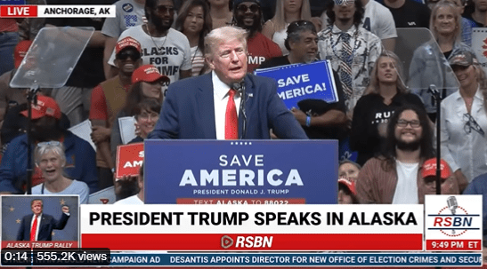 Former President Donald Trump referred to Tesla CEO Elon Musk as a “bullshit artist” at his Alaska rally on Saturday. Referring to Musk pulling out of his deal to buy Twitter and also recent claims of voting for a Republican for the first time, Trump said, “He’s got himself a mess, you know, he said the other day, ‘I’ve never voted for a Republican.’ I said I didn’t know that. He told me he voted for me. So he’s another bullshit artist but he’s not going to be buying it, although he might later. Who the hell knows what’s going to happen? He’s got a pretty rotten contract. I looked at his contract, not a good contract. Sign up for Truth. We love Truth.”
