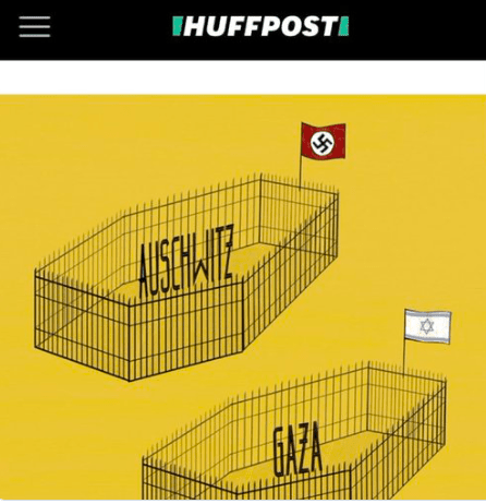 “Comparing #Israelis to the #Nazis is antisemitism. Delete this @HuffPost, now!” wrote Honest Reporting Canada.