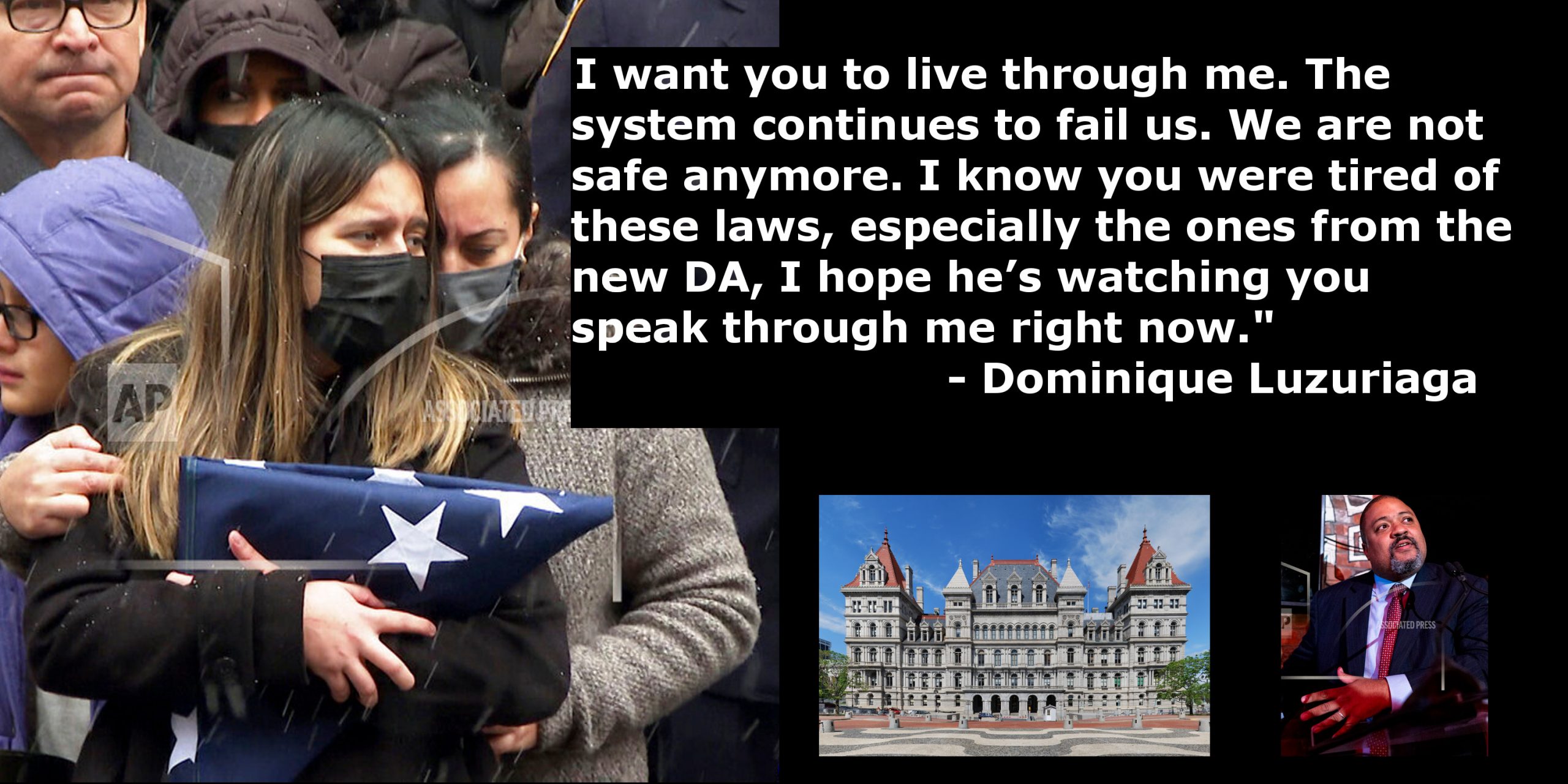 The whole city had difficulty breathing when the widow of slain NYPD Detective Jason Rivera, Dominique Luzuriaga spoke standing next to his casket. As she delivered a message to NYC leaders during her heart-wrenching eulogy of her husband, “The system continues to fail us. We are not safe anymore.” Sadly, her from the heart message is already being ignored by the current crop of Albany leaders. If a movement of victim leaders, like the policeman’s widow, is not built to enforce her words and wishes on Albany, innocent people will continue to die.