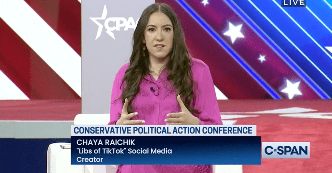 The ADL’s Center on Extremism published an article Monday titled “At CPAC 2023, Anti-Transgender Hate Took Center Stage.” The article’s featured image showed Raichik, the Orthodox Jewish woman behind the popular Libs of TikTok Twitter account that shares TikTok videos exposing teachers, doctors, and activists pushing agendas such as transgender identity in schools, hospitals, and elsewhere.