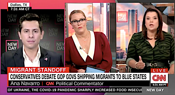 Latino Conservative @AbeEnriquez makes CNN RINO @ananavarro spontaneously combust in total LIVE TV meltdown after DEFENDING DeSantis for flying illegals to Martha’s Vineyard ? pic.twitter.com/1mrM8QlqmS