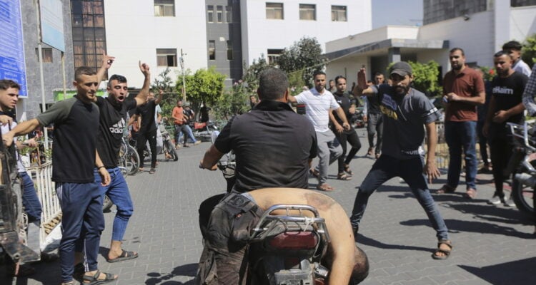 On her personal Facebook page, al-Azza posted above a photo of an elderly Israeli woman being taken hostage by Hamas terrorists (according to a translation), “I’m dying laughing. It’s black comedy. The old woman is laughing. It’s the last thing that will happen before she dies.”