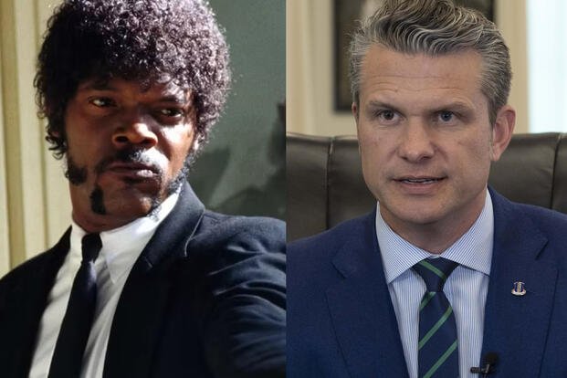 According to Military.com, the controversy erupted after a video circulated online showing Hegseth delivering what he described as a prayer tied to a combat search-and-rescue mission. The speech, labeled “CSAR 25:17,” was presented as having biblical roots, referencing the Book of Ezekiel. However, viewers quickly noticed that much of the wording mirrored the stylized speech made famous by Samuel L. Jackson’s character in the film.