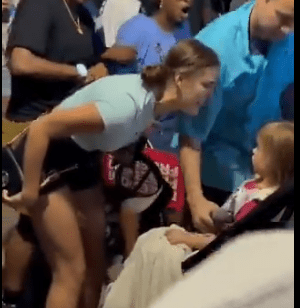 In one clip of the incident posted to X, which garnered over 5.5 million views in one day, Harris fans can be seen verbally clashing with a man with a microphone before one woman bent down and began yelling at a little girl, who appeared to be the man’s daughter: