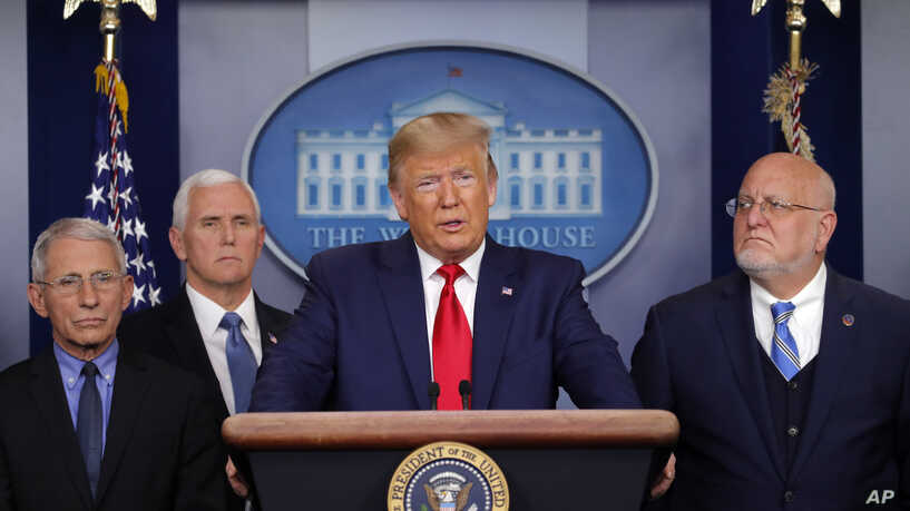 The president took to the podium in the Brady Briefing Room in the White House West wing shortly after officials in the state of Washington, in the northwest United States, announced the country’s first COVID-19 death.