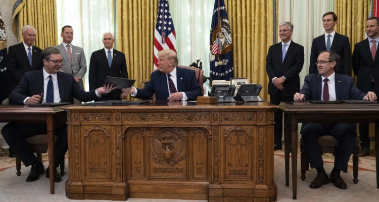 After two days of meetings with Trump administration officials, Serbian President Aleksandar Vucic and Kosovo’s Prime Minister Avdullah Hoti agreed to cooperate on a range of economic fronts to attract investment and create jobs. The announcement provided Trump with a diplomatic win ahead of the November presidential election and further improves Israel’s international standing.