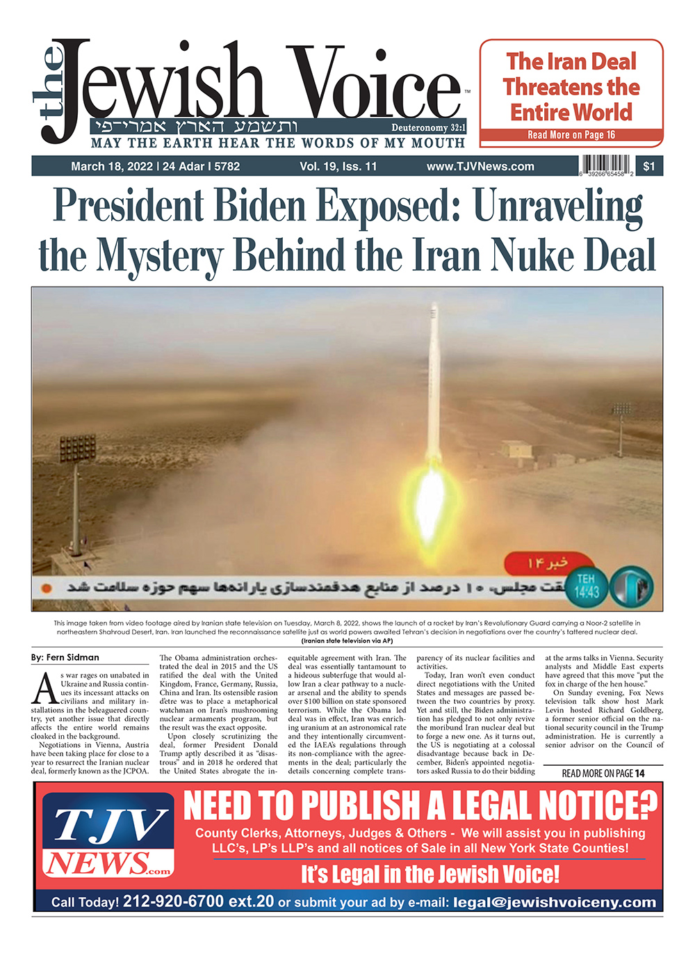 Police in Israel illegally used Pegasus spyware, including on the phones of Benjamin Netanyahu’s son and others, prompting a high-level investigation and upending Netanyahu’s corruption trial.In February, Russia began its war against Ukraine. President Biden said that Moscow had flagrantly violated international law. “We still believe that Russia is poised to go much further and launch a massive military attack against Ukraine,” Biden saidIn March, negotiations to revive the Iran nuclear deal took place in Vienna, Austria. Biden’s appointed negotiators asked Russia to do their bidding at the arms talks and security analysts agreed that this move “put the fox in charge of the hen house.”In April, a gunman in a gas mask and a construction vest set off a smoke canister on a rush-hour subway train in Brooklyn and shot at least 10 people. The suspect, Frank R. James, 62 was ultimately apprehended after a lengthy police manhunt.Elon Musk reached an agreement to buy Twitter for roughly $44 billion, promising a more lenient touch to policing content on the social media platform where he promotes his interests, and opines on a wide range of issues to more than 83 million followers.In May, Russia used advanced S-300 anti-aircraft missiles to target Israeli jets carrying out airstrikes in Syria, marking a major departure from a previous policy of essentially allowing the Israeli Air Force free reign to operate in the areaIn June, history was made as Israel and the United Arab Emirates signed a free trade agreement, which just happens to be the first of its kind that Israel has concluded with an Arab country. The pact was signed in Dubai by Israel’s Minister of Economy and Industry Orna Barbivai and the UAE after months of negotiations.Also in June, the agenda of the The House committee investigating the Jan. 6, 2021 election protest at the U.S. Capitol Building in Washington, DC revealed that their intent was to criminally indict former President Trump, despite lacking key evidenceIn July, it was reported that an increasing number of sharks were being spotted in the waters off Long Island, and a number of swimmers had been attacked. Two lifeguards suffered bites and a third person was bitten in by a shark within two weeksIn August, it was reported that the U.S. drone strike that killed al-Qaeda leader Ayman al-Zawahri on the balcony of a Kabul safe house intensified global scrutiny of Afghanistan’s Taliban rulers and further undermined their efforts to secure international recognitionThe Justice Department rebuffed efforts to make public the affidavit supporting the search warrant for former President Donald Trump’s estate in Florida, saying the investigation “implicates highly classified material”In September, NY Times reporters Eliza Shapiro & Brian Rosenthal erroneously claimed that NY yeshivos leave students ill equipped to find jobs and excel in society due to a poor secular educational curriculum.On October, anti-government demonstrations erupted in several locations across Iran as the most sustained protests in years against a deeply entrenched theocracy entered their fourth week. Marchers twirled headscarves in repudiation of coercive religious dress codesAlso in October, violent crime continued to soar in New York City and it was reported that murders in the city’s subway system since 2020 have skyrocketed to the highest annual levels in 25 years.In December, it was reported that a surge of anti-Jewish vitriol was stoking fears that public figures like Kanye West and Kyrie Irving are normalizing Jew hatred and ramping up the risk of violence in a country already experiencing a significant escalation in anti-Semitism.