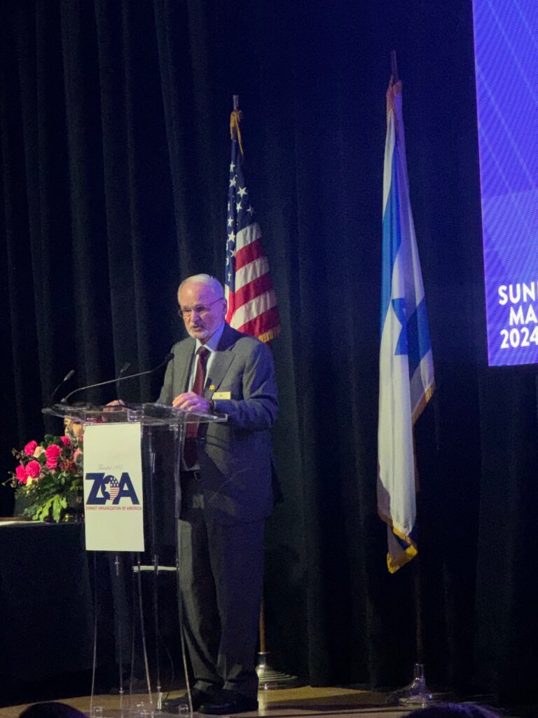 The Zionist Organization of America (ZOA) held its “Heroes for Israel” gala on Sunday March 17th 2024 at the David Posnack JCC in Davie Florida with dinner beginning at 6 PM. The sold-out 400 person event with tickets for $360 and less started with a delicious meat buffet dinner, a smattering of outside protestors, and a host of speeches that were even more delectable.