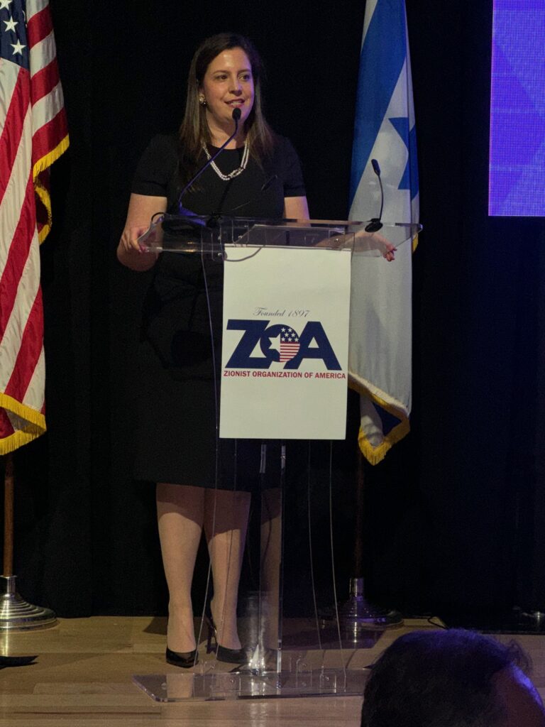 Avid ZOA supporter Dr. Miriam Adelson was in concurrence as she flew in from Israel to present Rep. Elise Stefanik with the “Defender of Israel Award”. Stefanik who chairs the US House Republican Conference rose to fame when billions tuned in for the most watched conference of all time where leaders of MIT, Harvard and University of Pennsylvania failed to answer Stefanik’s simple question as to whether “calling for the genocide of Jewish people violated the school’s code of conduct”-to which all three responded it was context dependent. Stefanik recalled the depravity of Hamas which she witnessed firsthand on the 47 minute video of their atrocities provided by the Israeli government-a moment etched in her memory eternally. She was shocked by Schumer’s efforts to hold up aid to Israel in its darkest hour as she was doing everything in her power to give Israel the necessary resources.