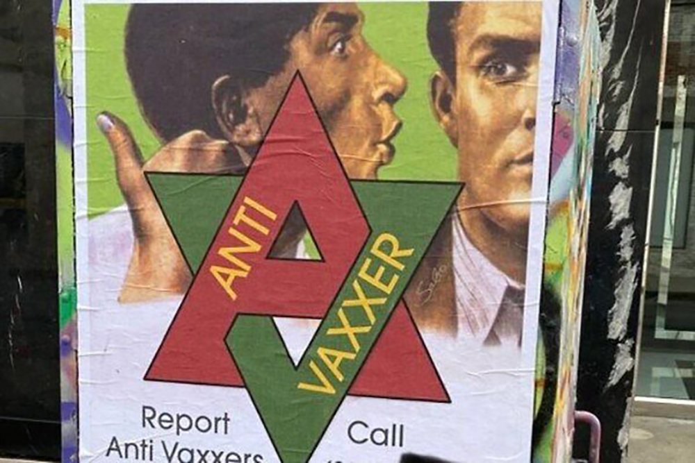 Anti-vaccine posters that featured a Star of David on them were discovered in at least two Los Angeles-area locations this week, including pasted to an electrical box outside a synagogue.