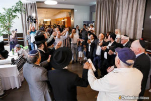 The crowd then returned to the hotel where the Torah had been finalized under the direction of scribe Rabbi Shimon Shimonov of neighboring Austria. The celebration was rounded out with a sumptuous dinner, speeches, the recitation of a customary discourse by the bar mitzvah boy—the 11th of the couple’s 13 children—and then more dancing and singing that lasted long into the night.
