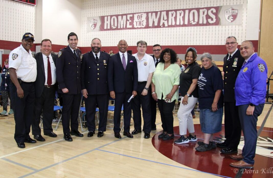 Staten Islanders came ready with questions on July 17, 2023, for Mayor Eric Adams’ town hall event at Curtis High School, located in the St. George section of Staten Island. This was part of the mayor’s five-borough “Talk with Eric” series.