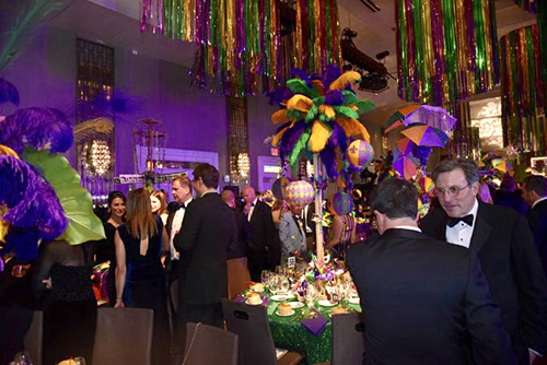 Another inimitable cog in this wheel is the indomitable Wendy Siegel whose husband Stephen, Vice Chairman of CBRE and a legend in the real estate world, praised Wendy for dedicating her time and energy to raising money for the past 26 years. Wendy joked that she and Silverstein just arrived from Santacon and were ready to party. Wendy also inaugurated dedicated member Lloyd Goldman as a trustee. The meal was definitely New Orleans centered with crawfish and spare ribs accompanied by chocolate pecan pie and cheesecake. At 10 PM, the speeches and dinner portion concluded and guests headed to the dance floor where the more than 20-person band regaled the crowd with pop hits that had the crowd screaming with delight. At 11:30 PM, after nearly two-and-a-half-million had been raised, guests left with a bag containing New Orleans treats such as a cocktail mix and a book of its history-concluding a meticulous night that raises the expectations for next year to nearly unattainable heights.