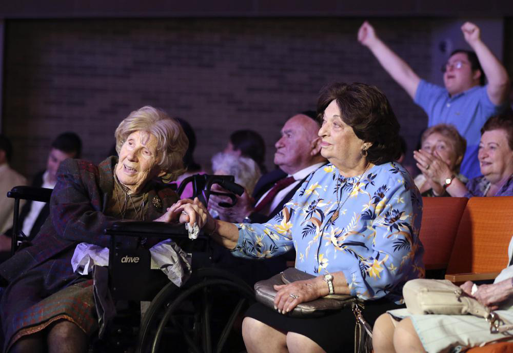 “It’s extremely good for the soul, for the heart, to see people coming out once again and socializing,” said Dolly Rabinowitz, who sat in the front row of the Yeshivah of Flatbush auditorium joined by other Holocaust survivors and students of the Modern Orthodox Jewish school.