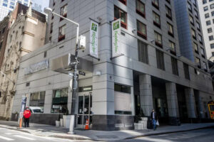As the city faces growing pressure to expand its shelter system, it is turning to vacant hotels for those who need a roof and a place to bunk down as they sort out their lives. One of them is the Holiday Inn, located in Manhattan’s Financial District. A few months ago, signs in the lobby windows of the 50-story, 500-room hotel said it was closed.