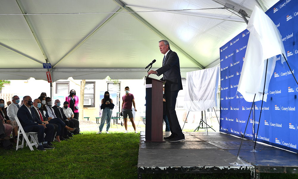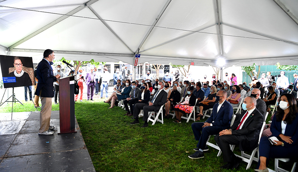 NYC Health + Hospitals/Coney Island leadership and staff, public health system executives, members of the Ruth Bader Ginsburg family, local elected officials, and community members came together on Thursday afternoon to celebrate the facility’s new hospital complex to be built as well as the campus name changes. Joining them at the festive gathering were New York City Mayor Bill DeBlasio, NYC Health + Hospitals CEO Mitchell Katz, MD, NYC Health + Hospitals/Coney Island CEO Svetlana Lipyanskaya, Justice Ruth Bader Ginsburg’s granddaughter Clara Spera, Theresa Scavo, Chair of Community Advisory Board, Queenie Huling, a patient and other prominent community and governmental leaders.