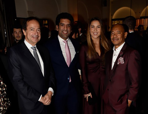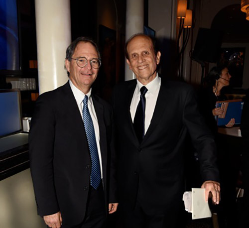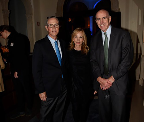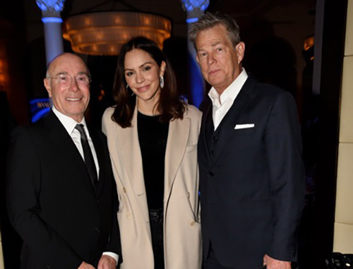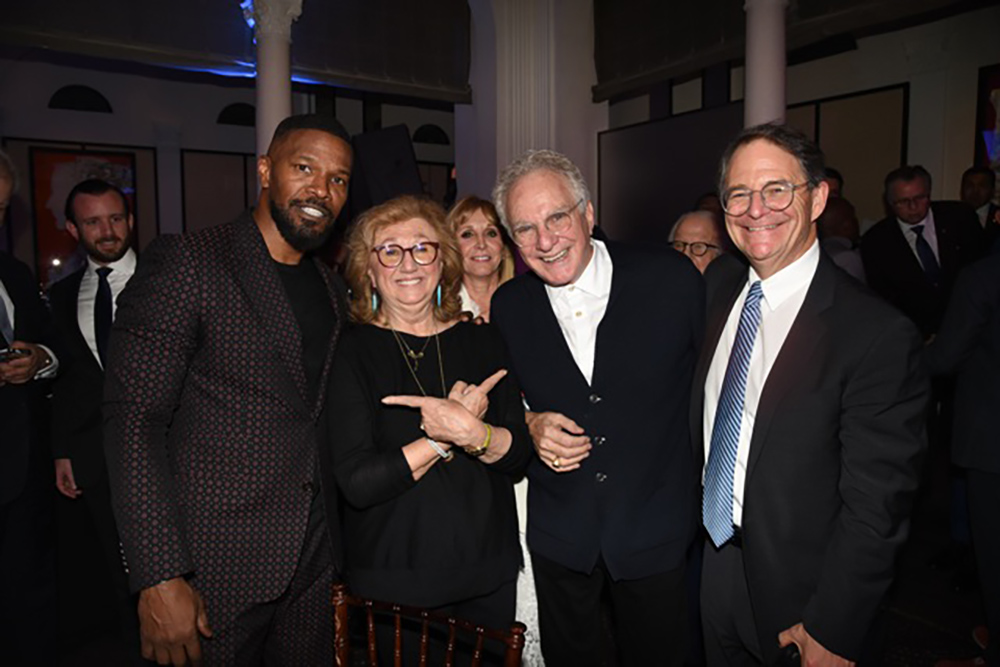 The evening began with a packed cocktail hour that started at 6 PM. Photographers feverishly snapped the pictures of arriving luminaries with a flurry circling around Foster, McPhee, and Geffen. As guests congregated in the dining room Milken began with his usual quiz as to which department Americans rated as providing the best service-with the surprising answer being the Postal Service. He also noted the incredible achievements of Veteran researchers and scientists who thanks to Milken and PCF were being provided the same access to medical care as well-heeled New Yorkers. PCF CEO and leading cancer researcher Jonathan Simons declared Milken a triple threat: born a math genius, achieving epic strides on Wall Street, and ultimately thrust into greatness through his cancer diagnosis which led him to spearhead groundbreaking research-resulting in a 51 percent reduction in deaths from prostate cancer. Lining up the men whose lives were saved by Milken, remarked Simons, would require a 240-mile single file line that would take 204 days 24/7 to meet and greet. Moreover, every dollar raised by the foundation for prostate research impact 73 other forms of cancer. Simons was excited to announce a new form of precision genomic treatment targeting metastatic cancer that would be a 5th level of defense when all else had failed. Stephen Eisenmann, who was diagnosed with Stage 4 Cancer, announced via video that thanks to PCF he was now in remission from a cancer that doctors were certain would end his life. All these miraculous happenings were documented in “The PCF Times” a newspaper that was distributed at the dinner describing advances in medicine along with advocating a food-is-medicine approach.