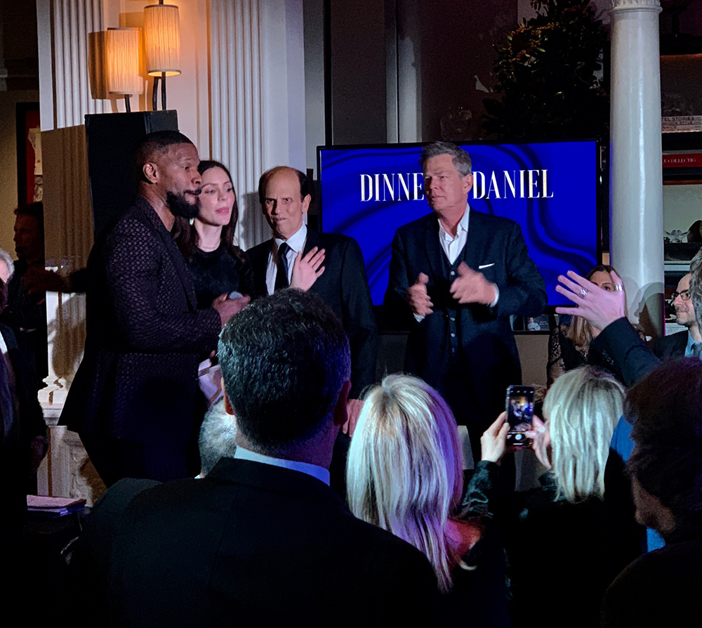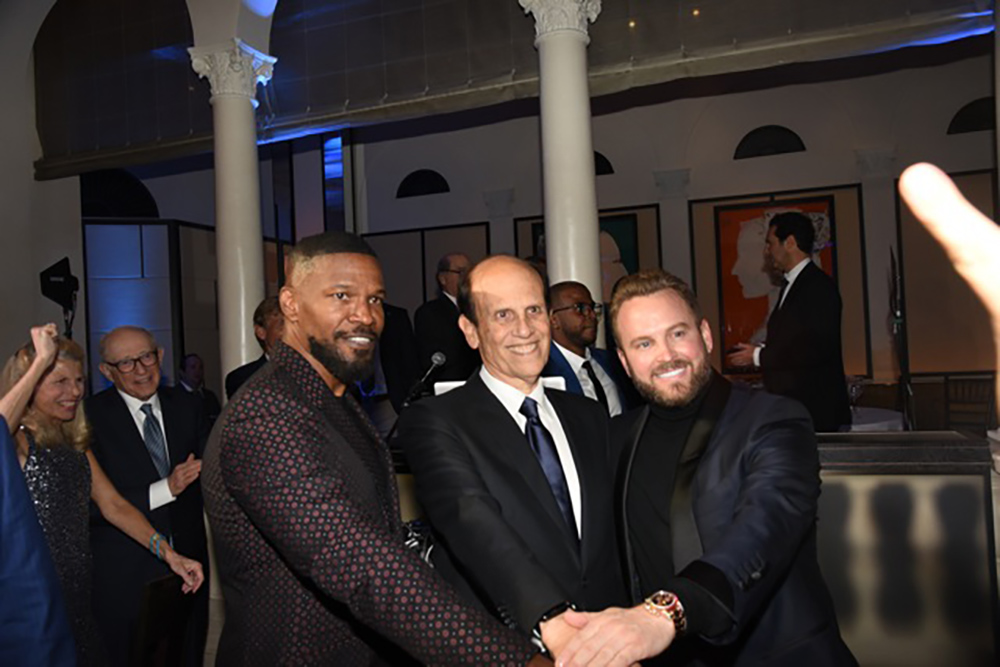 The fundraising portion was thankfully brief, as Milken was able to raise over $10 million in minutes by auctioning off a baseball camp experience and Billboard Music Award tickets for $100,000 and $50,000 respectively. Moreover, dozens of his peers including David Geffen and John Paulson agreed to sponsor “investigators” for $75,000 a year for 3 years with Stewart Rahr donating a whopping $1 million and another family contributing $5 million to fund revolutionary research for terminal patients. The real fun began at approximately 8:30 PM when mentalist Lior Suchard, who flew in from Israel for the occasion, regaled the skeptical crowd with his uncanny psychic abilities beginning with his revealing the number David Geffen was thinking of and stunning the audience upon guessing the name of the first guy a dinner guest had kissed (Darren), along with her husband’s grade school teacher (Alfonso). Furthermore, he recited the pin number to a bank account of a man whose wife had no knowledge of it and asked financier, Lowell Kraff, to set his Patek Philippe watch to a time, which turned out to be 9:18 PM, that Suchard had previously written on a paper. The room was full of math whizzes who were left baffled by these exceptional happenstances as they unsuccessfully tried to decipher the methods to his magic. After dinner of swordfish and salad had concluded, dessert was brought out by entertainer extraordinaire Jamie Foxx who appeared in the corner and made his way from table-to-table loosening a tightly wound group into malleable putty. Foxx performed for nearly an hour, as well-earned sweat dripped down his lively face. Clad in a purple silk Gucci suit he danced, sang, jumped on tables and generally wowed the crowd as handfuls of women joined him in the aisles. His musical accompaniment was equally enthusiastic, and mayhem nearly struck when he sang “Gold Digger” with dark glasses perched on his nose. Foxx, who was rumored to have performed sans payment, thanked the audience for donating to the charity, and enthusiastically posed for pictures until 11 PM. As the evening concluded even the normally stolid Milken had a wide grin permeating his face, as an avid baseball fan he had just hit a “Two-run Homer” and he obviously knew it.