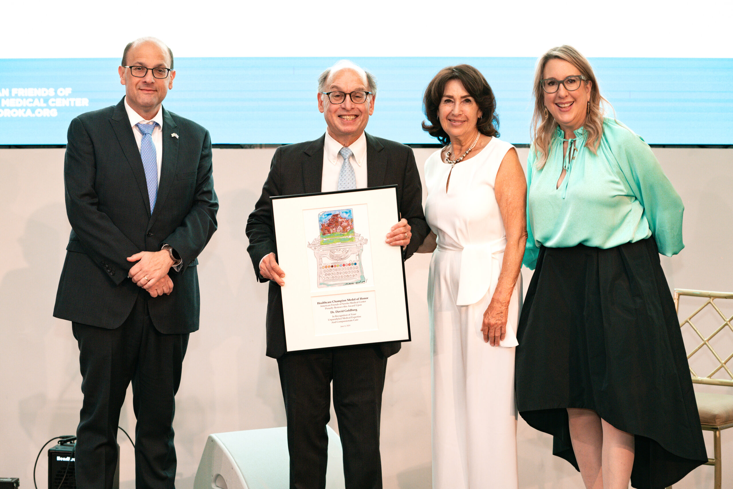 Other esteemed awardees included renowned urologist Dr. Joel Sheinfeld who was introduced by media personality Dan Abrams who credited Sheinfeld with saving his life after his diagnosis of testicular cancer a little over 20 years ago. As Vice Chairman and Deputy Chief of Urology at Memorial Sloan Kettering, Sheinfeld has pioneered lifesaving treatments in both testicular and urological care. In honor of his exemplary contributions The Dr. Joel Sheinfeld Urology Institute was established at Soroka in January 2024 to benefit the Negev and raise the standard of medical care in the entirety of Israel. The final honoree Dr. David Goldberg, an esteemed internist at Columbia Doctors and Assistant Professor of Medicine at Columbia University Medical Center for the past 30 years and an expert in travel medicine, Lyme disease, HIV and community acquired infections received his award with little fanfare. His expertise in navigating the Covid pandemic proved critical to Soroka during challenging times.