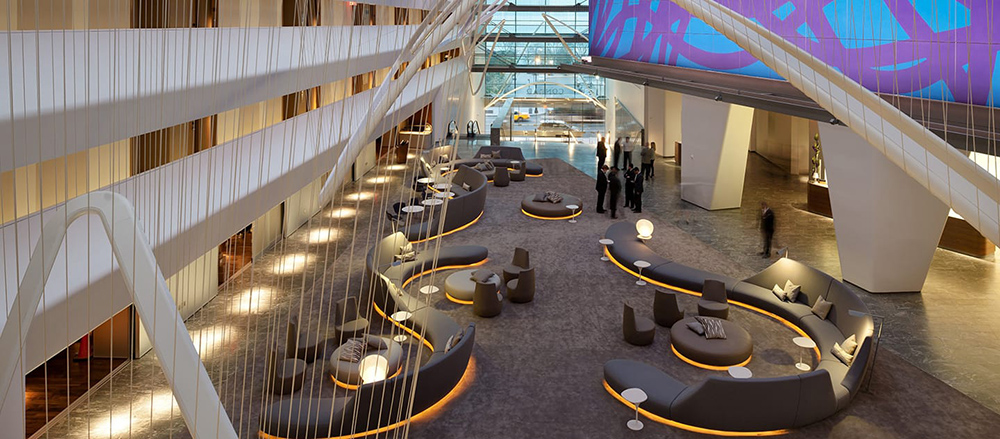 Marriot Marquis This Central Times Square hotel on 46th street is a behemoth of its own, notwithstanding all the attractions right outside the 49-floor hotel. It is known for providing a luxury experience and its 124,755 square feet of space enhanced by cutting-edge technology. Rooms start at $323 per night.