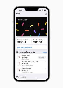 Apple Pay Later provides users in the US with a seamless and secure way to split the cost of an Apple Pay purchase into four equal payments spread over six weeks, with zero interest and no fees of any kind.3 Built into Apple Wallet and designed with users’ financial health in mind, Apple Pay Later makes it easy to view, track, and repay Apple Pay Later payments within Wallet.