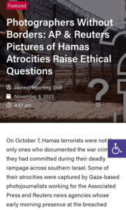 While perhaps being viewed as semantics its usage of the term “employee” directly leaves open the possibility that freelancers had knowledge of the attack as it’s widely known “freelancers are paid per job and are not considered employees” because they lack employer provided benefits such as health insurance and retirement plans. The subsequent removal of photographer names by the AP from many of its abhorrent photos is equally suspicious. Despite the protestations of revered news outlets full accountability from Reuters, the AP, CNN and The New York Times documenting when the photographers gave notice of their activities on October 7th, whether they were on actual assignment that day and whether the outlets knew of their close proximity to the perpetrators must be remitted-along with all photos taken. The answers to these questions would help exonerate the newspapers currently under a darkening cloud of suspicion.