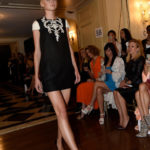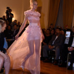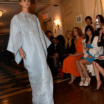 Toi did not disappoint, regaling the crowd with his signature touches of flowing capes, diamond brooches, floral detailing, and exquisite designs ratcheted up a few notches for his anniversary. The 8 PM show, which started forty minutes late, began with the National Anthem and was soon followed by the most competently executed show of Zang’s I have witnessed. The models were perfection with their hair styled in a high chignon reminiscent of Brigitte Bardot with some Audrey Hepburn and Twiggy thrown in. After sitting through a lengthy fashion week the most noteworthy trait of a Toi show is the attention he pays to each and every detail ranging from the harmonious classical music, to the perfect fit of each dress that glides down the runway. Unlike other shows where earplugs are a necessary staple and vulgar designs are ubiquitous Zang’s collections transport the audience to a different time and era.