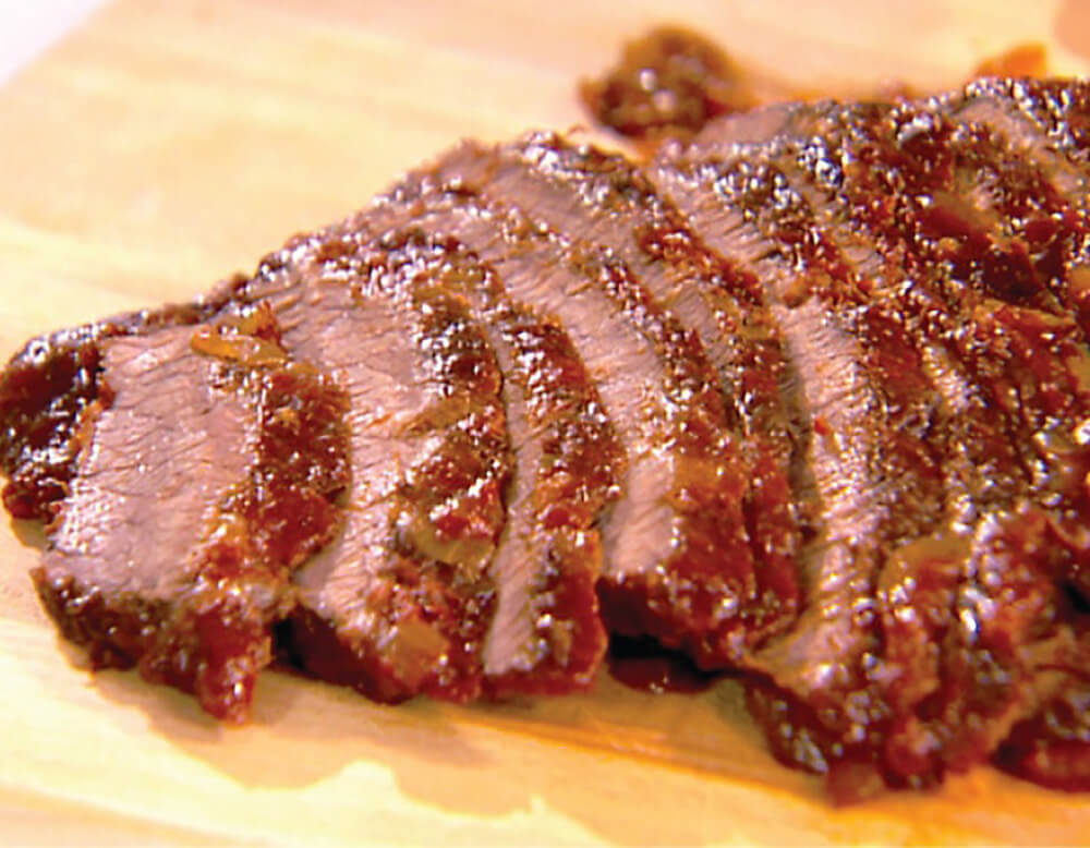 Bake for 2 ½ hours. Remove from oven. Cool and slice thinly and return meat to sauce. Rewarm and serve with sauce.