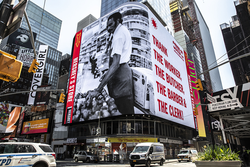 Launched as an artist-driven campaign to deliver messages of love, gratitude and solidarity with NYC residents, this ongoing exhibit, running at the top of every hour, appears on screens throughout Times Square as well as those above the Lincoln Tunnel and on LinkNYC kiosks across the City. The works currently featured have been curated by For Freedoms, an artist collective dedicated to creative civic engagement, discourse and direct action. Artists on the roster include Carrie Mae Weems, Jenny Holzer and Pedro Reyes.