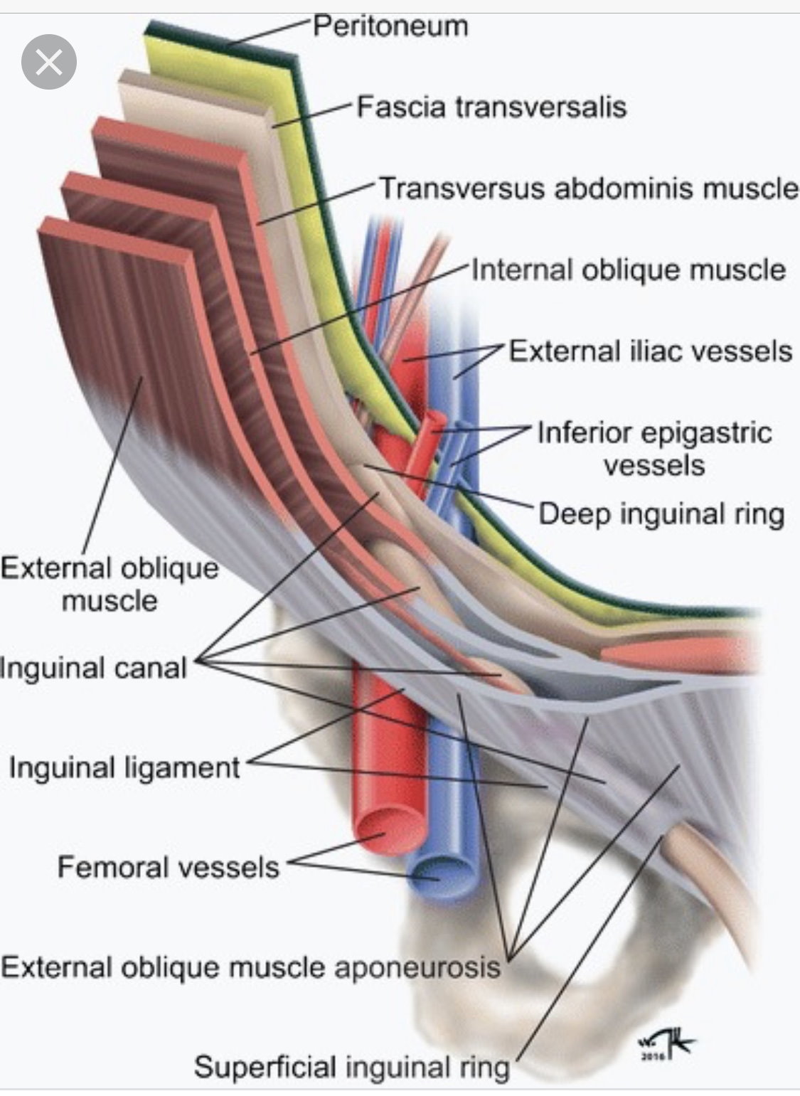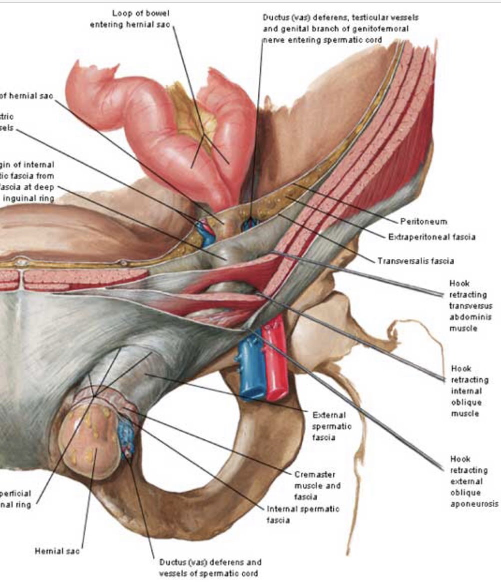So, what is an inguinal hernia? When we are in the womb, men and women undergo development of their respective gonads. In a male, the testicle is originally part of the lower aspect of the kidney: it breaks away, takes along with it its artery and veins, and on the way, joins up with the vas deferens (aka, the spermatic cord). This complex then pushes its way through the abdominal muscle in the groin (“inguinal” canal), and takes every layer of the abdominal wall along with it to create the protective housing called the scrotum (if you look at the scrotum under a microscope, it has the same six layers of the abdominal wall).