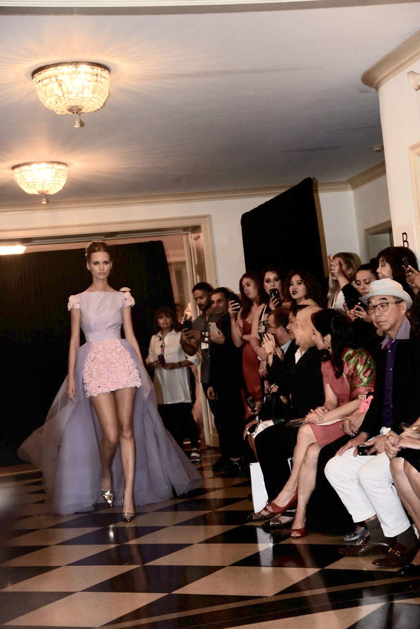 The Malaysian 58-year-old Toi, has a remarkable history, arriving in the United States at the age of 18 and opening his own atelier in 1989 after attending The Parsons School of Design.  He is paradigmatic of the opportunity abounding in capitalistic America for those who choose to work hard- exemplified by the fact that 30 years later the President’s son was sitting in his audience smiling from ear-to-ear at the designs parading by.  Toi said the collection was a tribute to his Malaysian heritage with his unique interpretation of textiles such as Batik, Sarong, and Songket Malayu.  The pastels were inspired by Her Royal Highness, Tengku Anis’s love for all shades of pastel.  It was only fitting that Zang who came from the humblest of backgrounds in Asia would pay tribute to his roots with a lavish show that spared little expense.