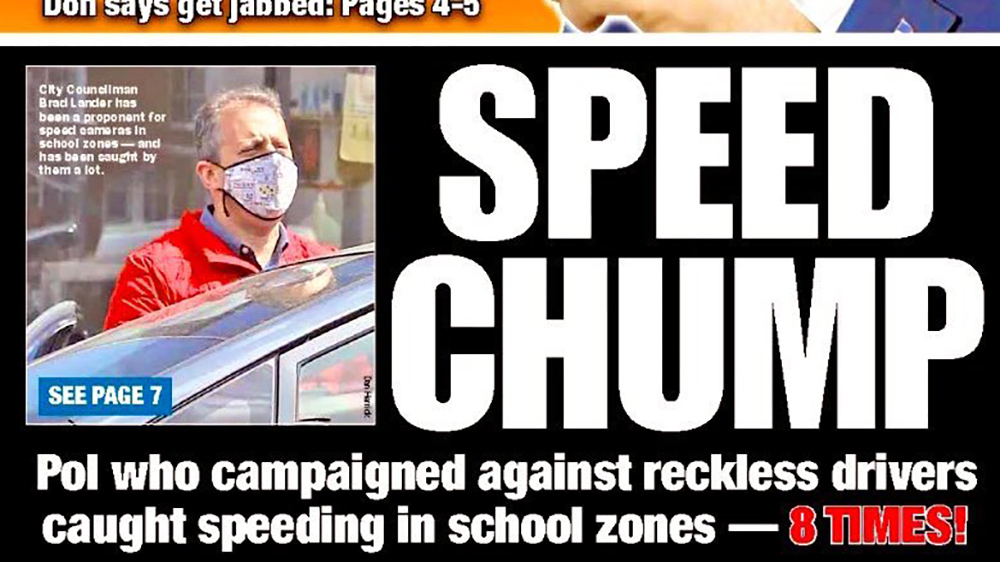NY Post: “Lander is subject to the law of hypocrisy. . . Lander supported the Reckless Driver Accountability Act to punish and potentially seize the cars of drivers repeatedly caught breaking the law on speed or red-light cameras. . . Now meet Brad Lander, the speed-hungry politician who has racked up eight speed-camera violations in the last five years, in each case pleading guilty and paying a fine for going more than 10 mph over the speed limit.”
