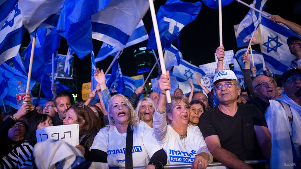 On the left side of the screen on Tuesday, 15,000 Israelis gathered Tuesday evening outside the Tel Aviv Museum of Art to demand legal justice for Prime Minister Benjamin Netanyahu in the face of what they view as an anti-democratic usurpation of political power by Israel’s legal fraternity. They were condemned by the left, by the legal fraternity and its court reporters as enemies of the “rule of law.”