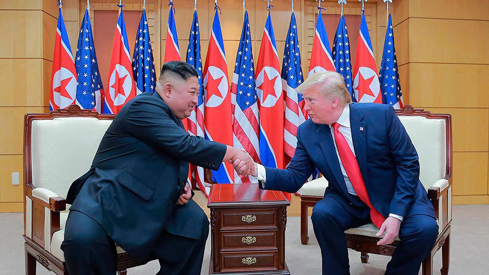 President Trump took an historic step on Sunday by becoming the first sitting U.S. president to cross into North Korea, after shaking hands with North Korea’s leader Kim Jong-un across the border at the Korean Demilitarized Zone. Kim hailed the president’s move as a “courageous and determined act” that “means that we want to bring an end to the unpleasant past.” President Trump said, “Stepping across that line was a great honor. I think it’s historic, it’s a great day for the world.” After Kim crossed the demarcation line to enter South Korea, President Trump said that he would invite Kim at some point to visit the White House. The two leaders held a 50-minute meeting at the Demilitarized Zone, resulting in their decision to designate teams for the resumption of nuclear negotiations that have stalled since the failed summit meeting in Vietnam earlier this year. President Trump noted, following the meeting, that “speed is not the object.” He added, “We’re looking to get it right.”