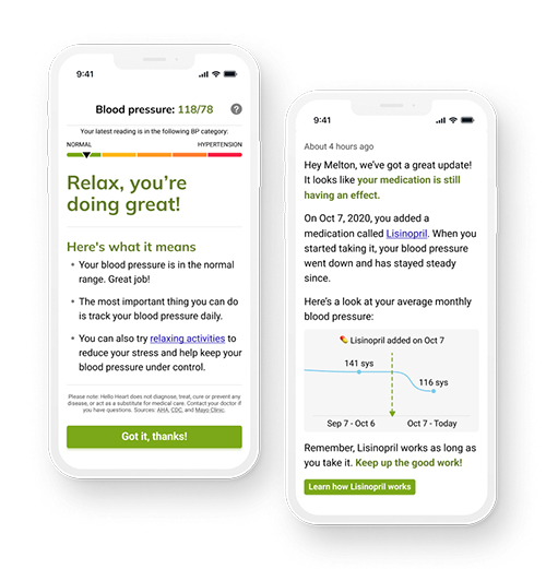 The company works with multiple makers of FDA-approved blood pressure monitors as part of a user’s health insurance plan. These devices can then connect to the Hello Heart application via Bluetooth.