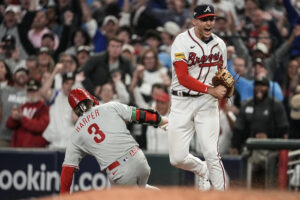 With Zack Wheeler dominating a lineup that led the majors in runs and tied a big league record with 307 homers, the Phillies built a 4-0 lead. J.T. Realmuto hit a two-run homer in the third off Max Fried, sandwiched between Alec Bohm’s run-scoring single and Bryson Stott’s sacrifice fly.