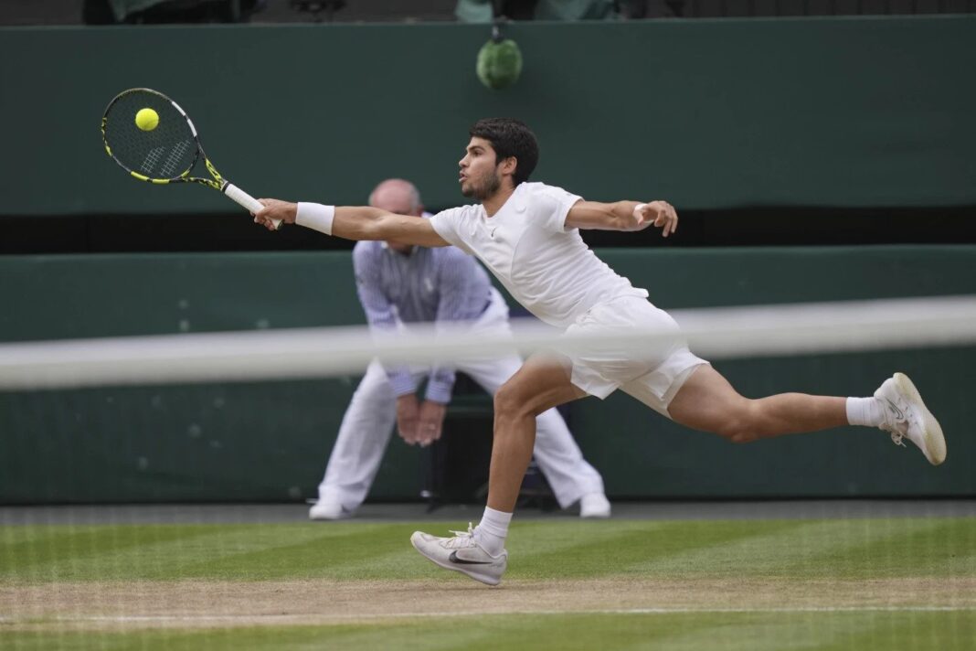 (AP) — A poor start left Carlos Alcaraz a single point from a two-set hole against Novak Djokovic in the Wimbledon final.