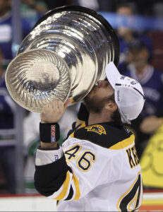 Teaming with Horton and Lucic in the 2011 playoffs, Krejci shone with three winning goals. His slick pass led to Horton’s game-winner in the intense 2011 Game 7 against the Lightning. As the game’s pace quickened, Krejci’s mastery lay in slowing things down when he had the puck. His east-west movement created room for himself and his teammates on the ice.