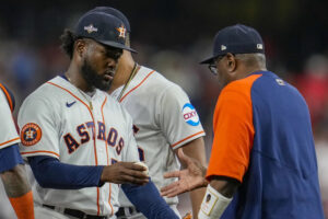 Texas jumped on Javier immediately and tagged him for three runs, highlighted by Seager’s second-deck shot, before he was lifted with just one out in the first. The right-hander entered 4-0 with a 0.82 ERA in four career postseason starts.