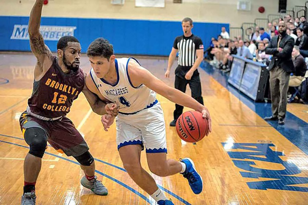 Yet sophomore Zevi Samet, in his first year with the Maccabees, is quickly carving his own legacy. The 6-foot-1 shooter was on fire with a video game-like performance in a recent win against St. Joseph’s University, connecting on 11 of 15 three-pointers and scoring 40 points. Two games earlier, he hit seven from behind the arc and scored 38 points in his home debut, showcasing different aspects of his offensive arsenal—from curling to hit a three from the left elbow, to a runner, to a three from the right corner.
