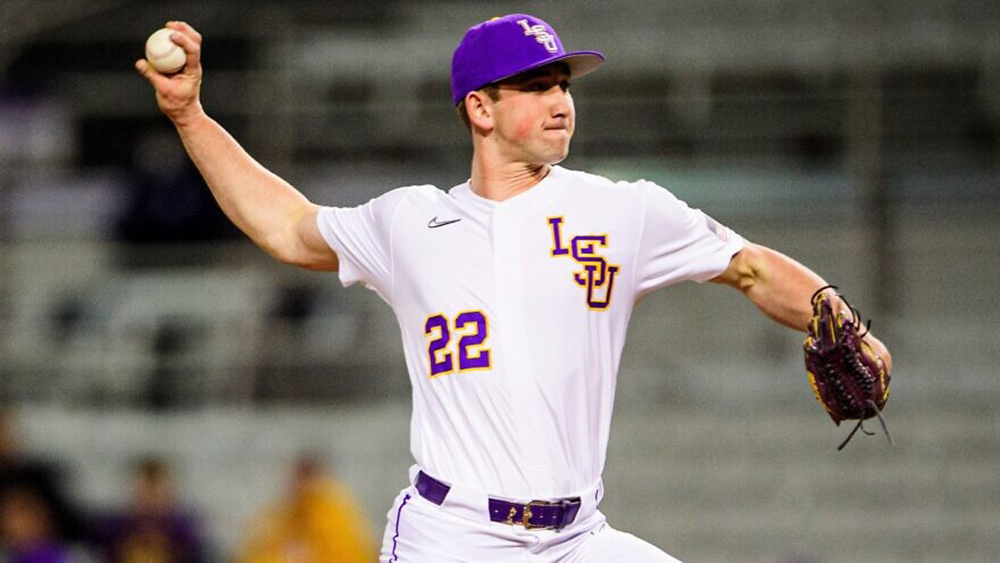 A 6-foot-2 right-hander from California currently pitching for Louisiana State University, he was the 160th overall pick in the fifth round of the Major League Baseball draft.