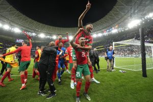 The tournament darlings opened their group with a scoreless draw against Croatia but haven’t lost since. They stunned world NO2 Belgium 2-0 before dispatching Canada 2-1 to win the group and advance to the sweet 16. In round 1, Yassine Bounou stopped three Spain penalties after making just one save over 120 minutes of Morocco’s 0-0 (3-0 pens) win in the World Cup Round of 16 on Tuesday. The victory sent the nation to their maiden World Cup quarter-final against Portugal. Achraf Hakimi sealed the penalties when he joined Abdelhamid Sabiri(RD1) and Hakim Ziyech(RD2) in conversions. In the elite eight, the Moroccans slayed the championship threat of Cristiano Ronaldo and Portugal, making Youssef En Nesyri’s goal in the 42nd minute stand up in the 1-0 victory.