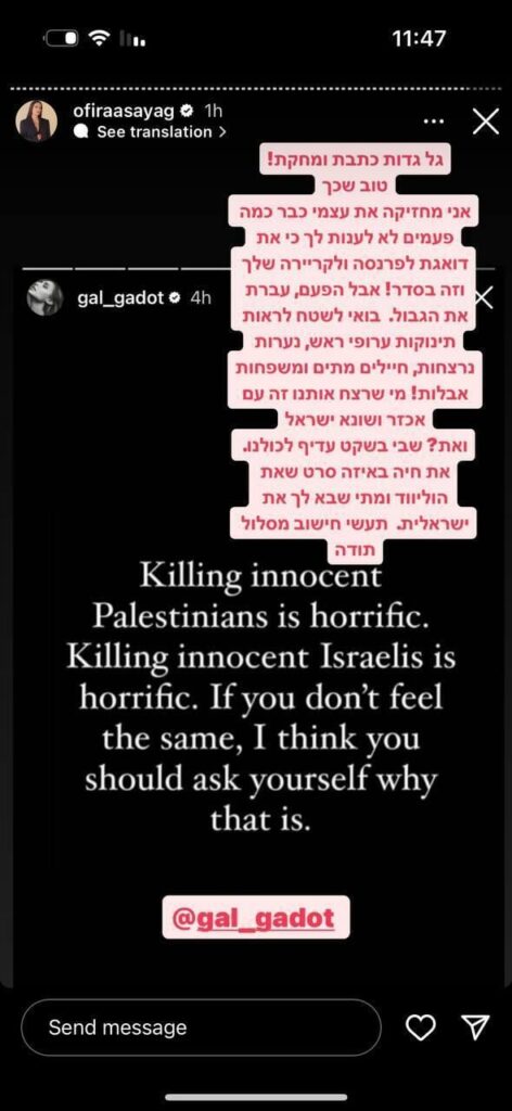 Gadot received significant Israeli backlash and soon removed her post-too little too late. In May 2021 when Hamas lobbed thousands of rockets into Israel Gadot wrote, “Israel deserves to live as a free and safe nation. Our neighbors deserve the same. I pray for our leaders to find the solutions so we can live side by side in peace.” Advocating for a two-state solution which would allow Hamas to kill and maim with greater alacrity while Gadot lounges in her $5 million Malibu mansion picking up massive paychecks is abhorrent. Israeli Television host Ofira Asayag responded accordingly, “Keep quiet…you live in some Hollywood movie and whenever you feel like it, you’re Israeli again.”