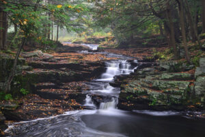 Looking for waterfalls near Honesdale PA and waterfalls near Lake Wallenpaupack PA? Discover the Little Falls cascades along a branch of Wallenpaupack Creek on the western side of Promised Land State Park, just 10 miles from Lake Wallenpaupack’s southern shores. The loop trail starts near the Lower Lake dam and includes several charming creek waterfalls along the way.